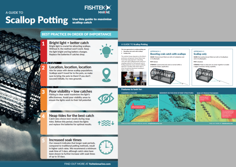 Scallop potting, pioneered and developed by Fishtek Marine, offers a transformative fishing method that is accessible to small scale inshore fishers. By using light as an attractant (or bait as it were!), it is now possible to catch scallops in static pots.